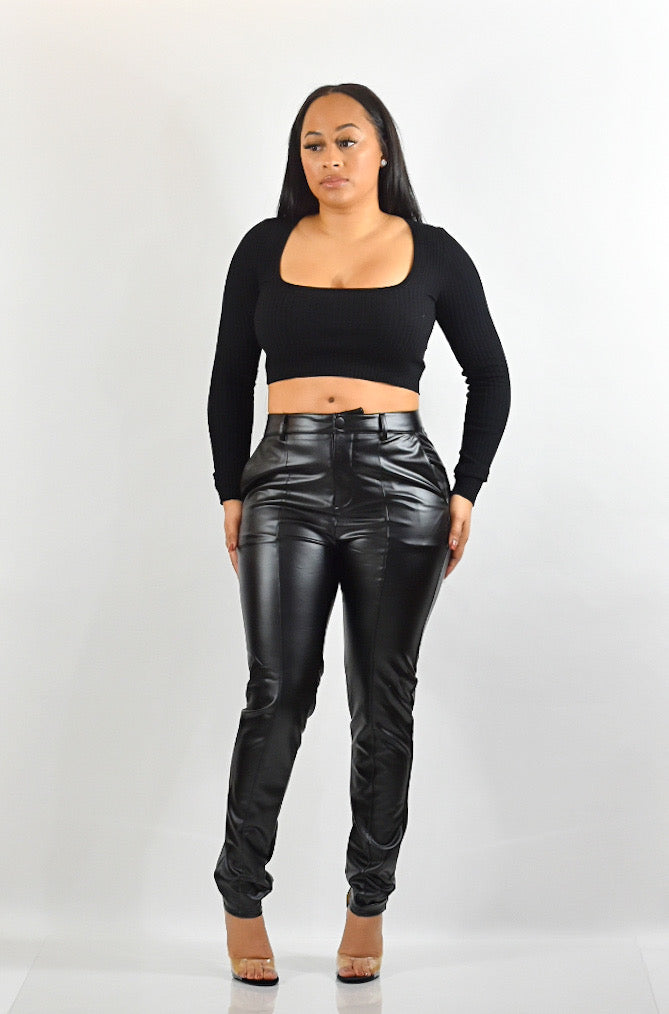 High Waist Front Seam Faux Leather Pants