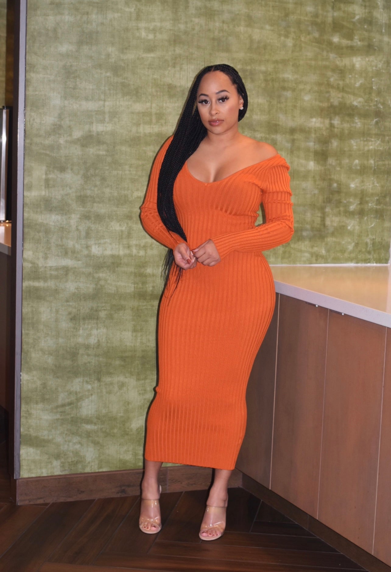 Your new go-to knit dress for effortless, head-turning style. This ribbed midi features a deep V neckline you can wear on or off the shoulders, long sleeves for a sleek look, and soft stretch fabric that moves with you. It’s simple, chic, and perfect when you want something easy that still makes a statement. Dress it up with heels or keep it minimal — either way, you’ll feel confident.