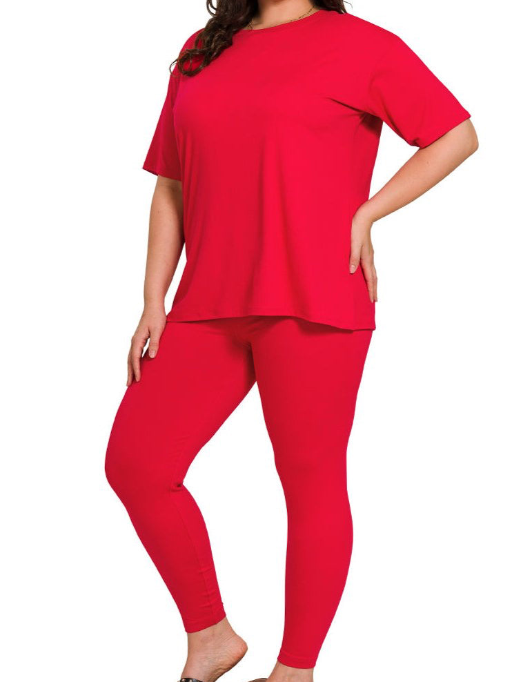 (Plus) Short Sleeve Butter Soft Legging Set | Ruby