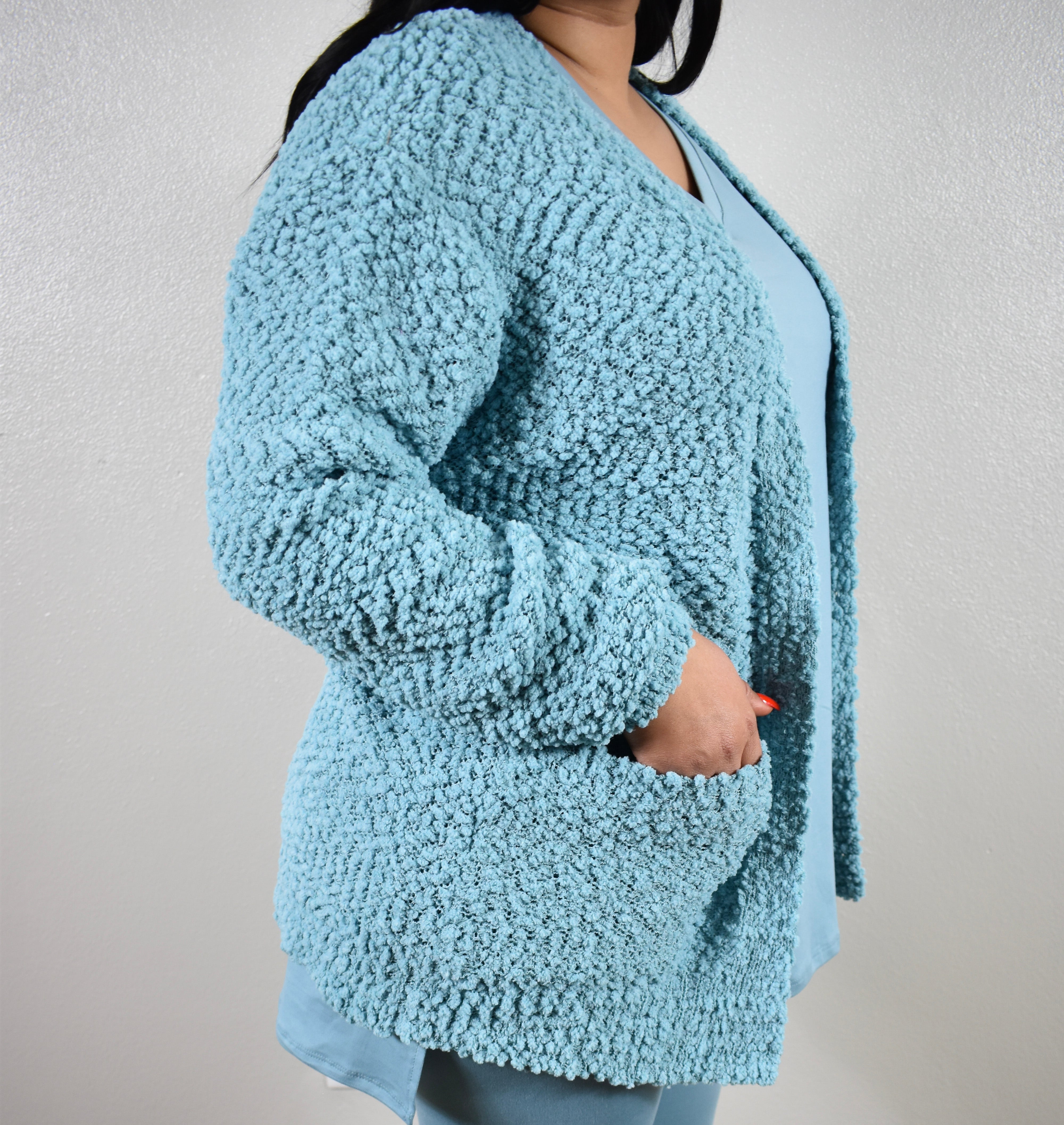 Add a little texture to your everyday layers with this soft popcorn-knit cardigan. Designed with long sleeves, roomy front pockets, and a relaxed silhouette — this one’s perfect for tossing over tanks, tees, or lightweight sweaters. Cozy, easy, and effortless for the season.
