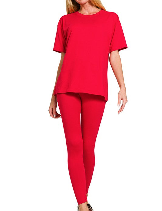 A butter-soft matching set made for easy, everyday comfort. The short sleeve top keeps things light and simple, while the smooth-stretch leggings move with you from morning to night. Soft, breathable, and effortless to throw on — this is your go-to set for errands, lounging, warm days, or layering under your favorite pieces.