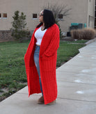 Your new go-to layer for cozy, effortless style. This oversized cable-knit cardigan drapes effortlessly with its maxi length, relaxed fit, and soft, textured knit. It’s warm without feeling heavy, easy to style, and designed with deep front pockets for practicality. Throw it over your everyday basics, leggings, or denim — it instantly makes any outfit feel pulled together.
