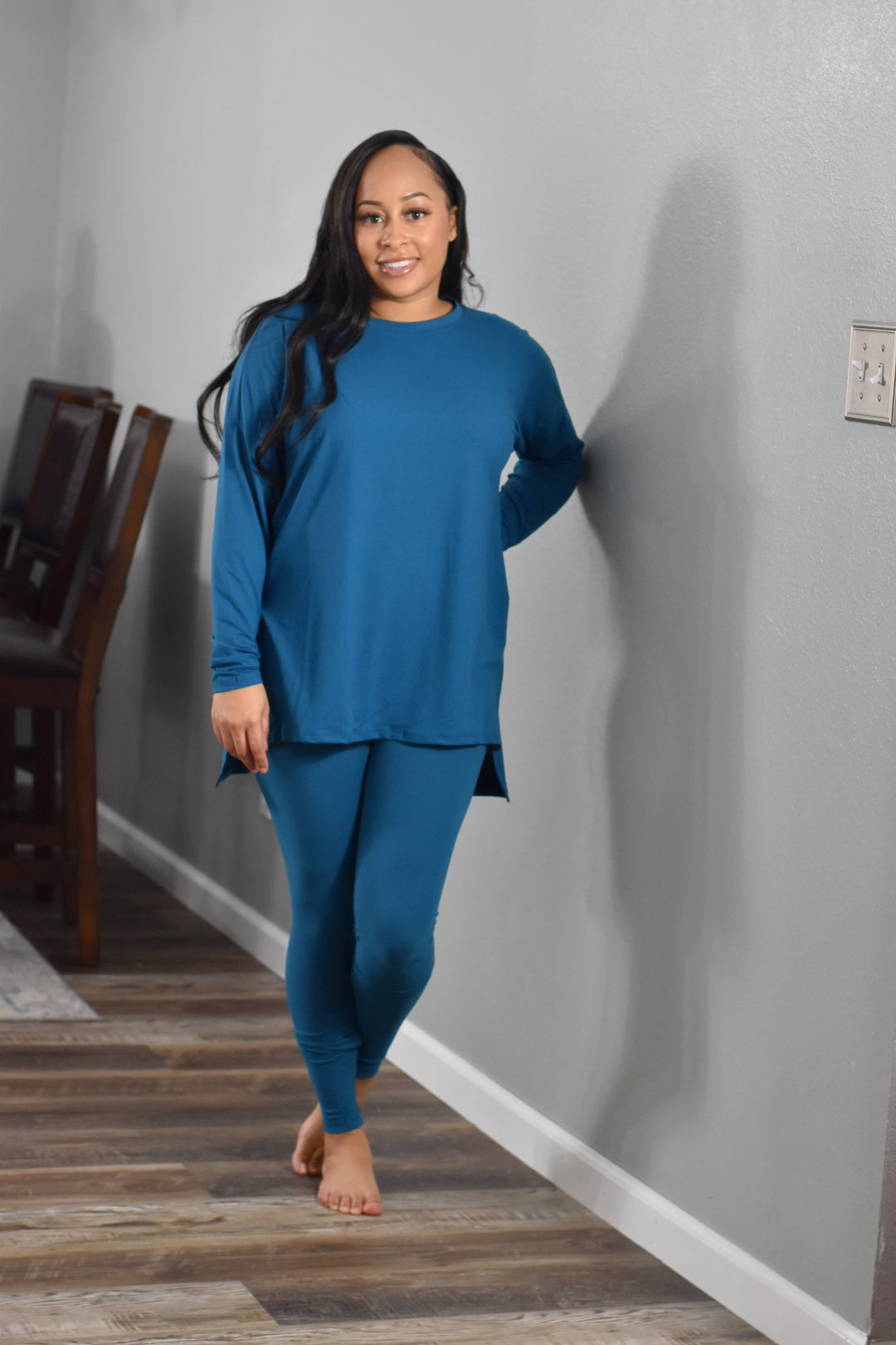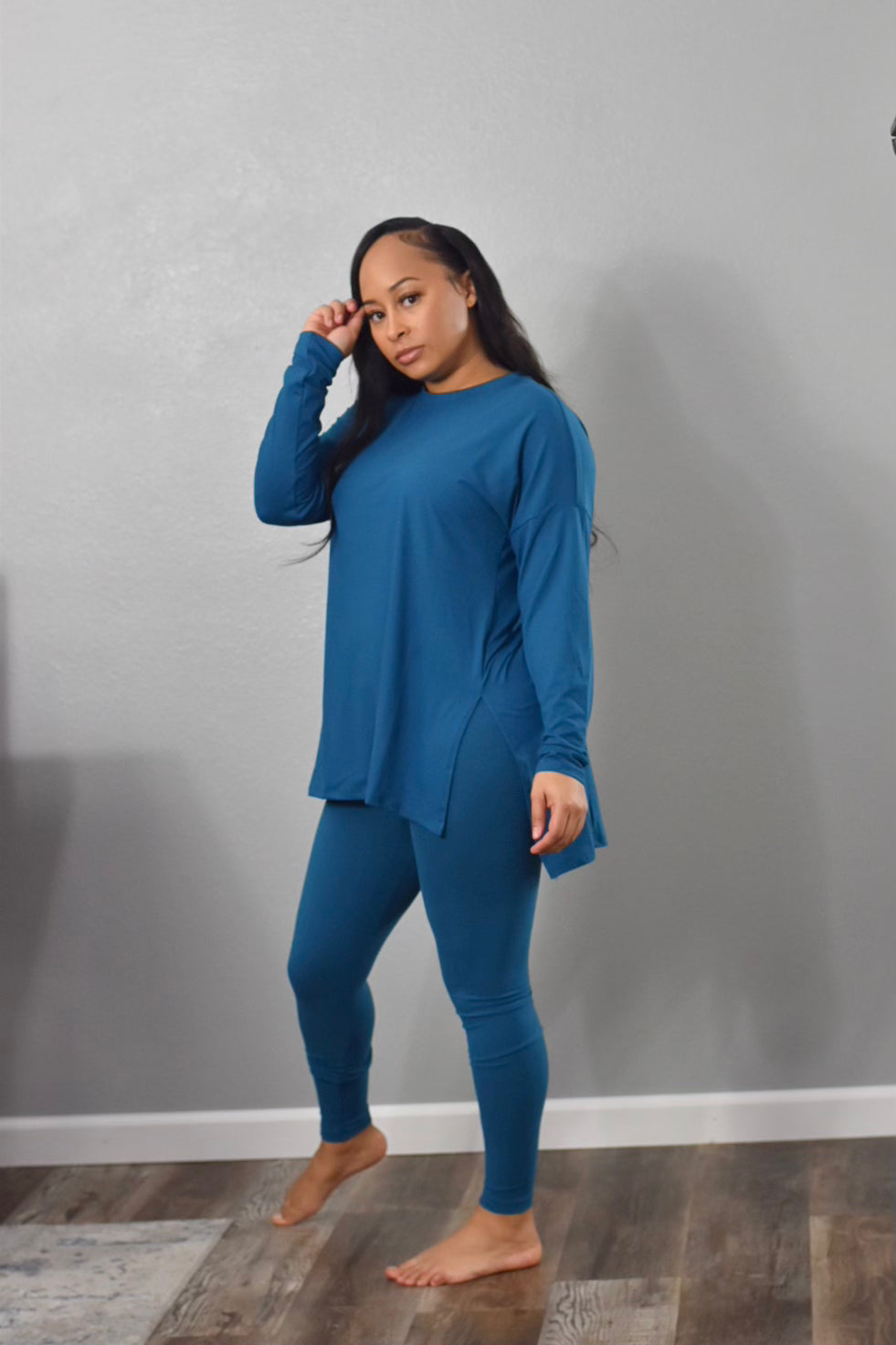 A butter-soft matching set made for easy, relaxed comfort. The oversized long sleeve top gives you that effortless, thrown-on feel, while the smooth-stretch leggings keep everything soft and simple. Lightweight, breathable, and made to move with you — this set is perfect for lounging, school runs, slow mornings, and any moment you want comfort without the fuss.