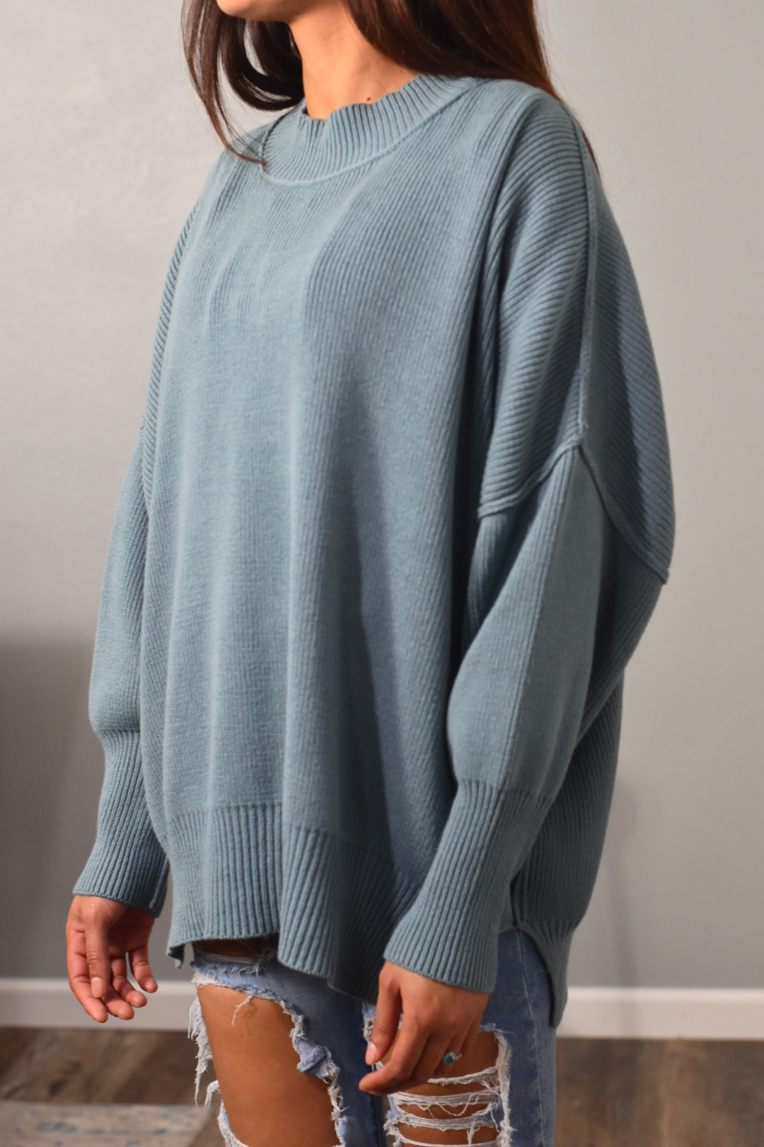 Blue Grey Side Slit Oversized Sweater