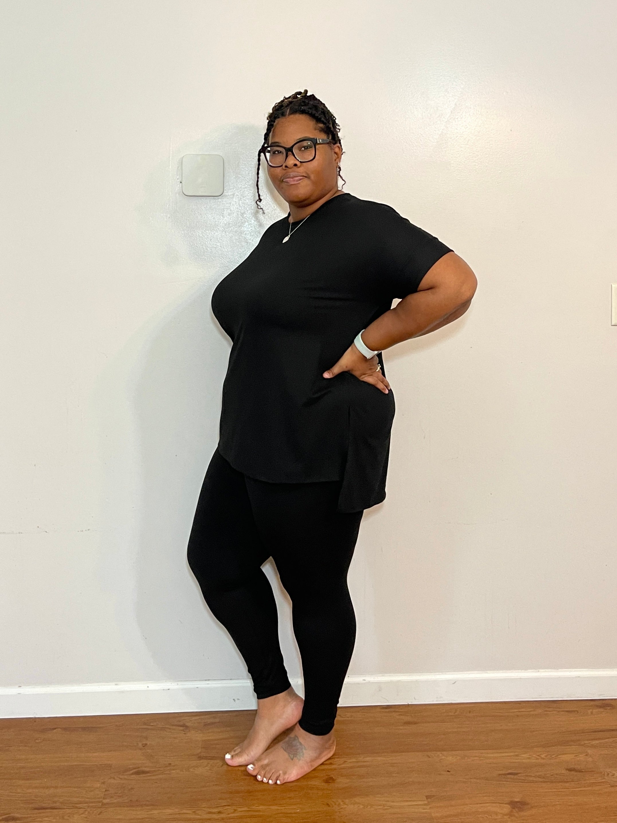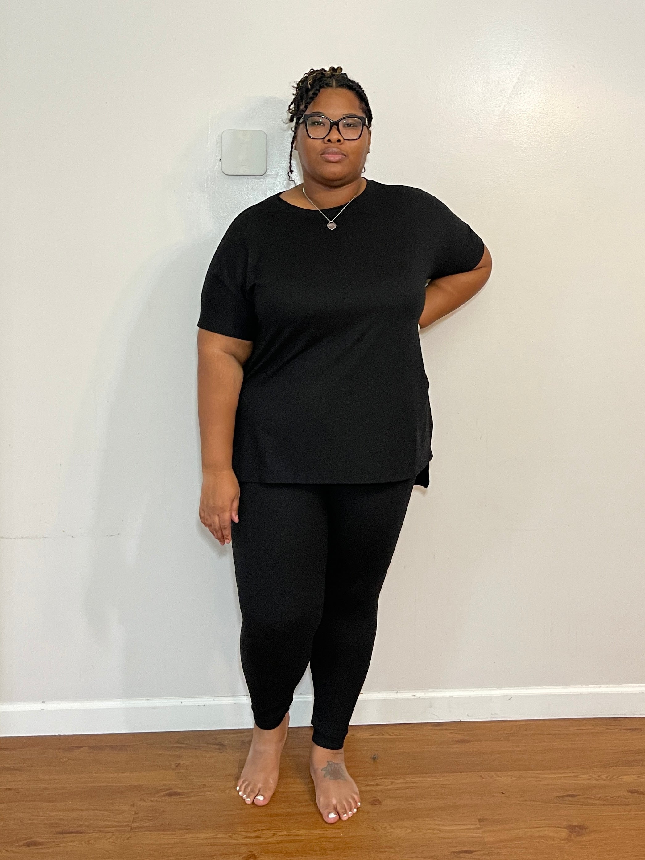 (Plus) Brushed Microfiber Crew Neck Legging Set | Black