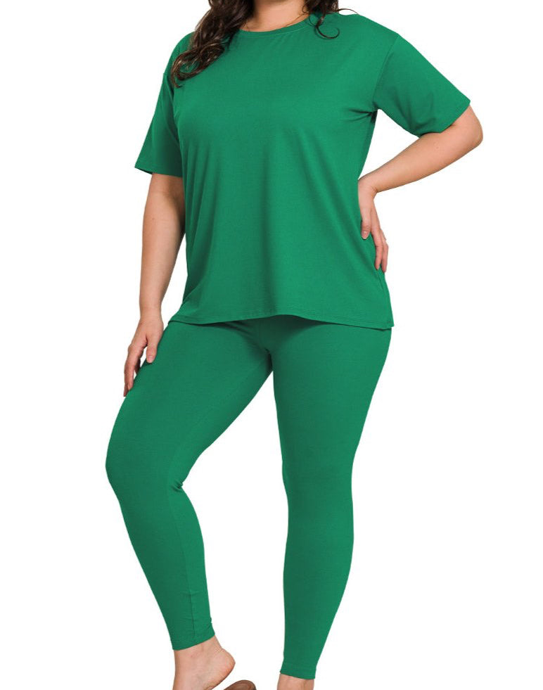 (Plus) Short Sleeve Butter Soft Legging Set | Forest Green